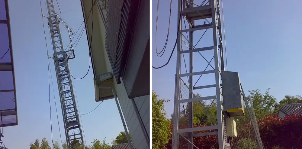 Steel structure vertical ladder with safety cage |